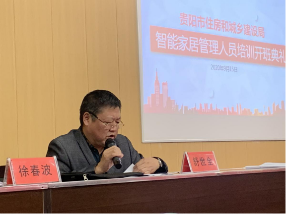 培训由装饰装修中心副主任舒世全主持,市住建局党委委员、副局长徐春波同志出席开训典礼并讲话。徐春波副局长指出:“要深刻认识在房地产业中推进智能家居建设的重要意义;要坚持推动成品住宅、智能家居融合发展原则;要坚持市场导向与政府引导相结合原则;要坚持示范带动与全面推进相结合原则。”