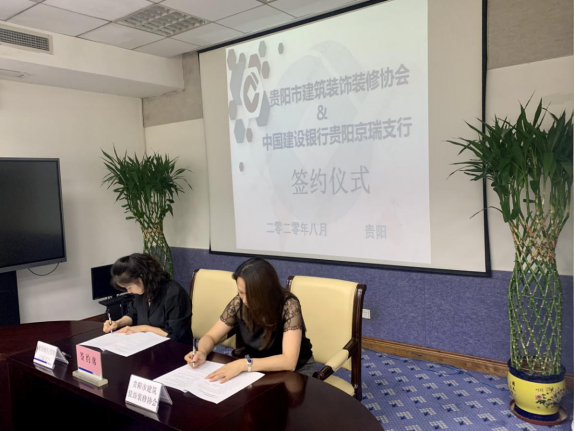 8月19日,会长吴秀忠、副会长汪亚东、秘书长晏杰一行到中国建设银行股份有限公司贵阳京瑞支行洽谈银企全面合作协议。